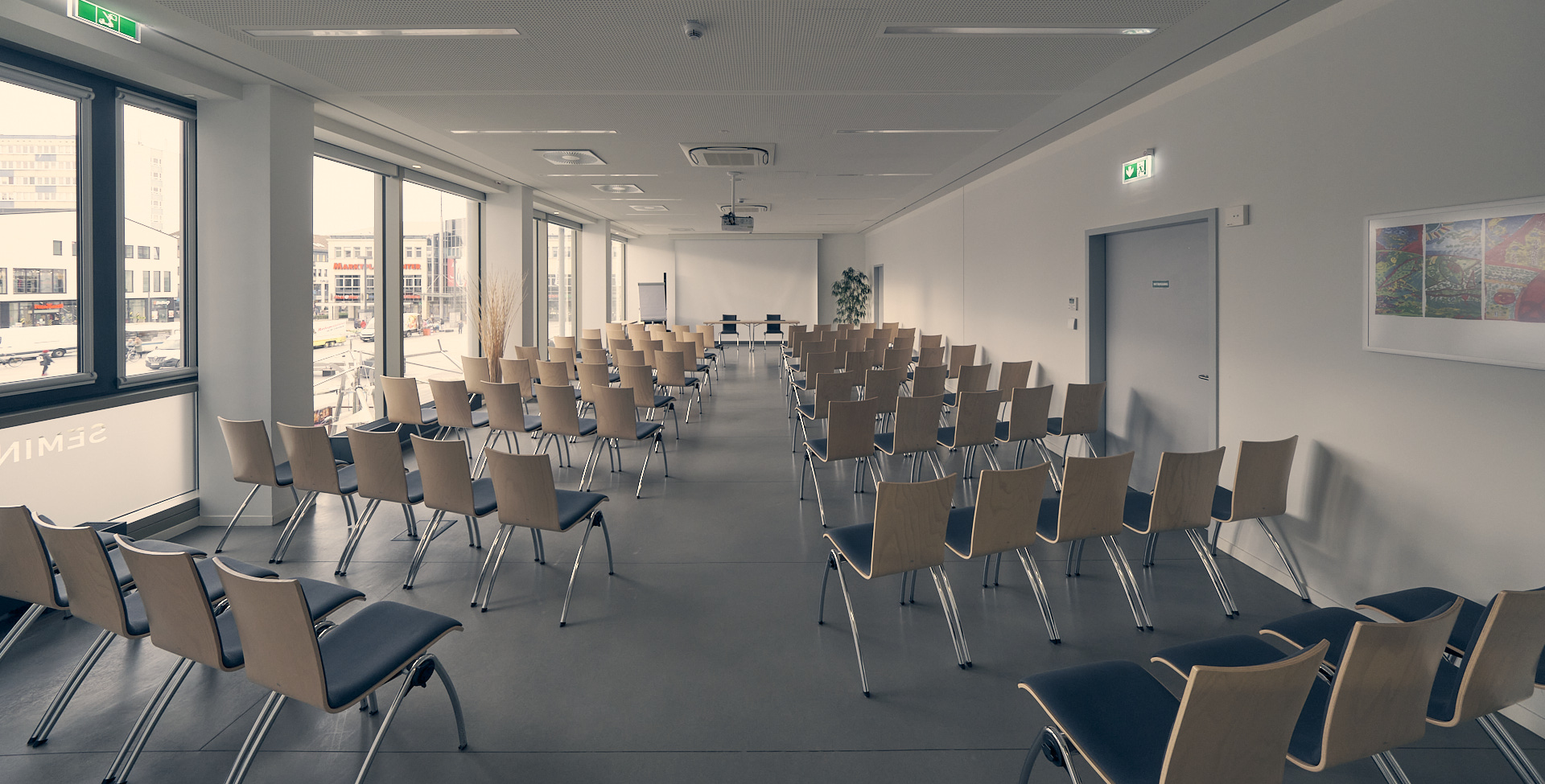 Mitten in der Stadt Neubrandenburg, im Haus der Kultur und Bildung, wartet dieser moderne Seminarraum auf Ihre Ideen. Hier kommt alles zusammen, was produktive Veranstaltungen brauchen. Klare Strukturen. Kurze Wege. Eine Atmosphäre, die den Kopf frei macht. Ideal für Seminare, Konferenzen, Workshops, Weiterbildungen, Arbeitsgruppen und vieles mehr.